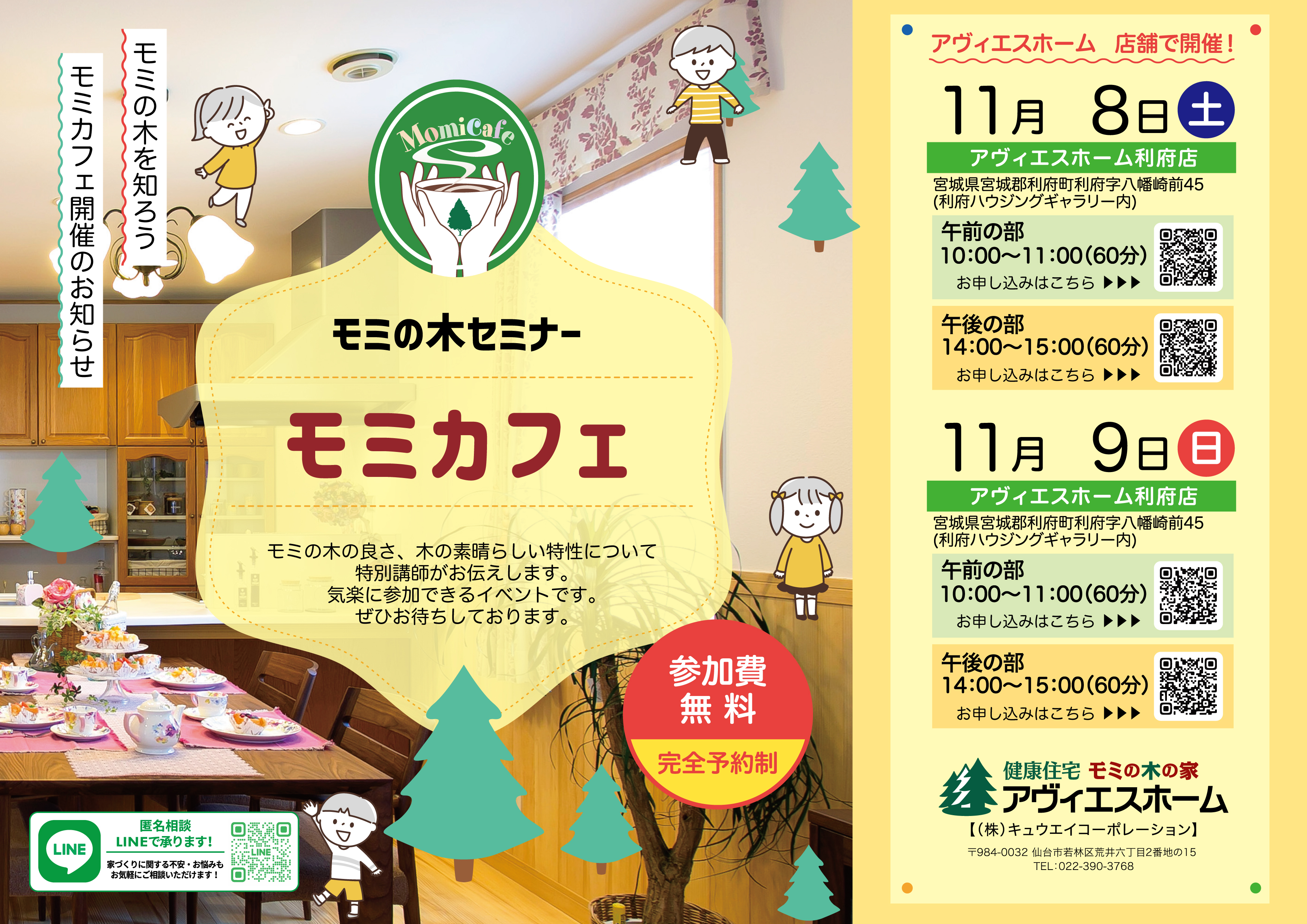 【アヴィエスホーム】11月8日(土)・9日(日) モデルハウス内イベント「モミカフェ」を開催します!