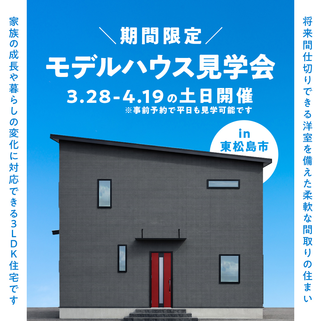 遊び心ある赤を、暮らしのアクセントに。お子様の成長や用途変更など、柔軟に対応できるようにした3LDKです。無駄を削ぎ落し、洗練された空間で、家族の時間をゆったりと過ごせます。見どころ満載のモデルハウスをぜひ、ご見学ください!